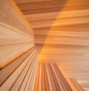 サウナ室に入った瞬間にふわりと広がる、美作檜の香り。